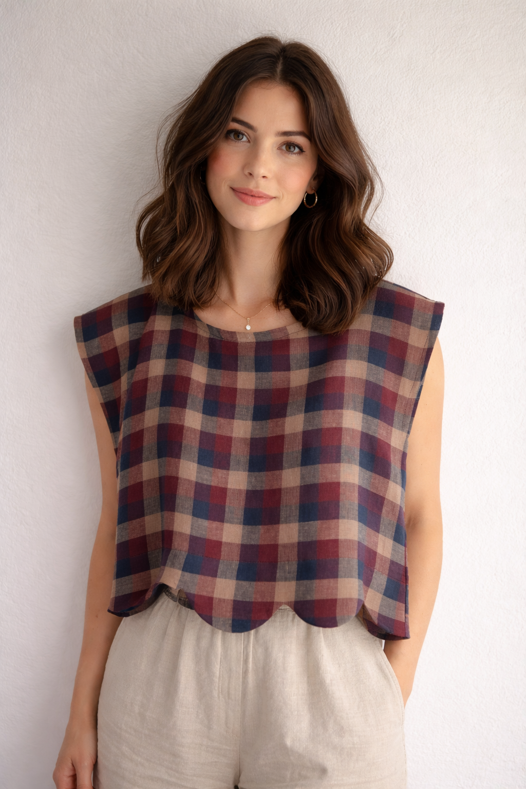 Image 1 of 6 Image 2 of 6 Image 3 of 6 Image 4 of 6 Image 5 of 6 Image 6 of 6 Scalloped linen top $118.00 Size: S M L Xl Add To Cart Added!