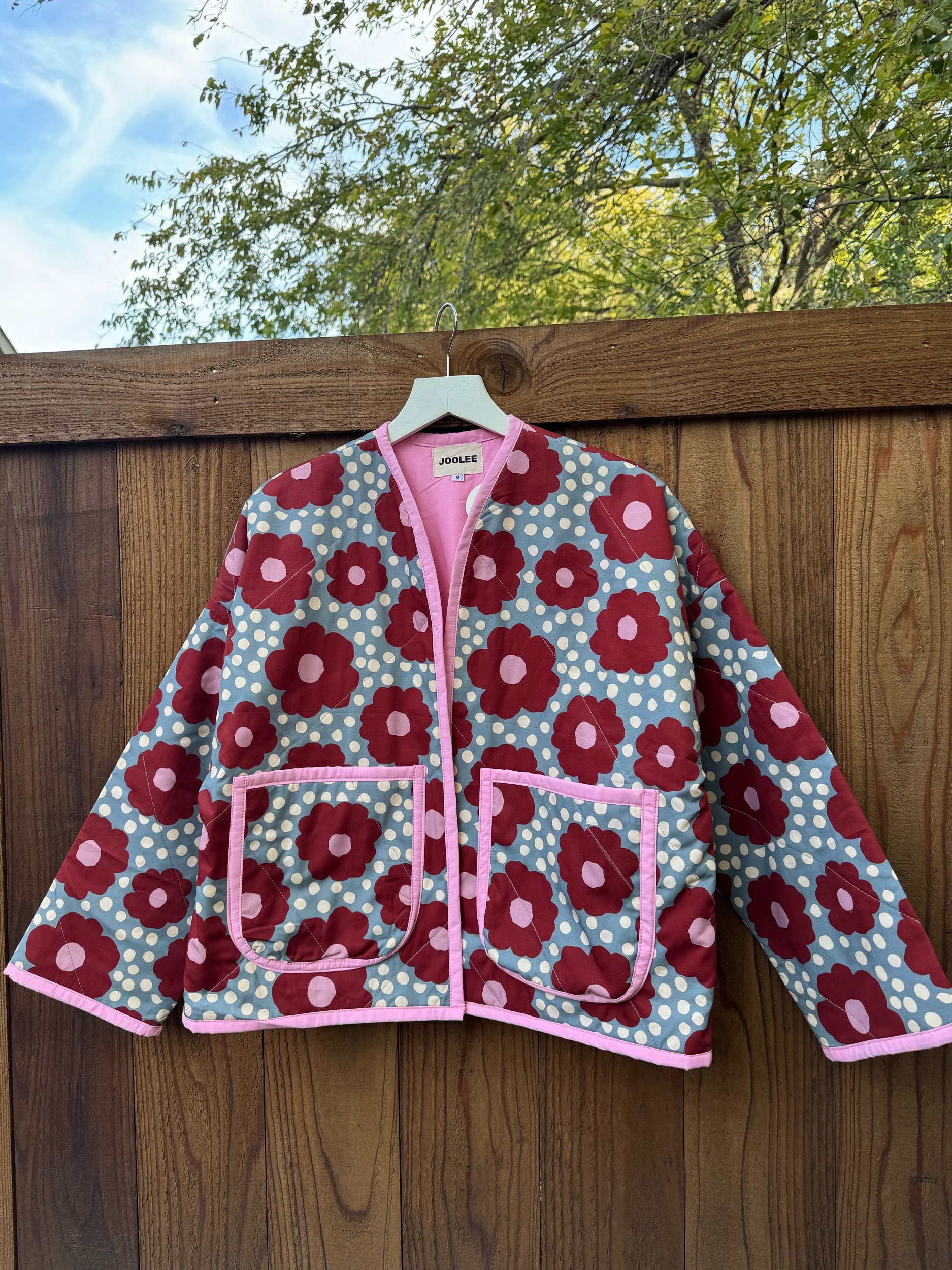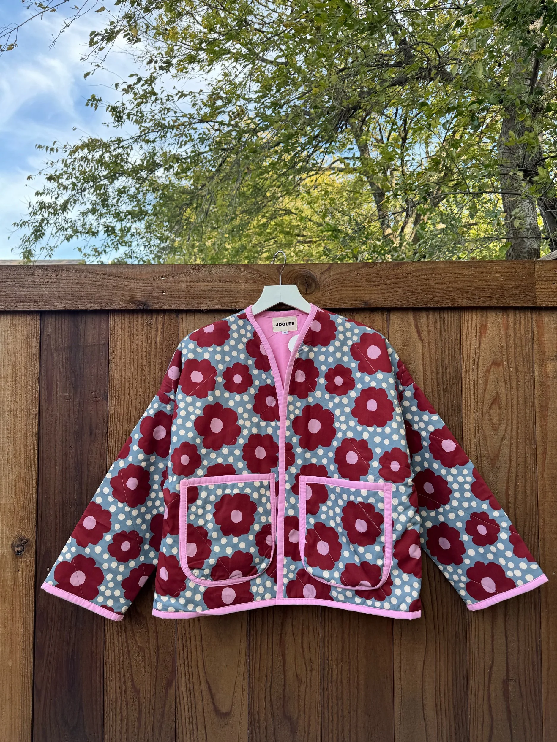 Image 1 of 4 Image 2 of 4 Image 3 of 4 Image 4 of 4 Red flower quilting jacket $158.00 Hand made 100 %cotton100%cotton fill.Comfortable fit.Front pockets.Length about 24 inches. Size: S M L XL Quantity: Add To Cart Added! Hand made 100 %cotton100%cotton fill.Comfortable fit.Front pockets.Length about 24 inches.