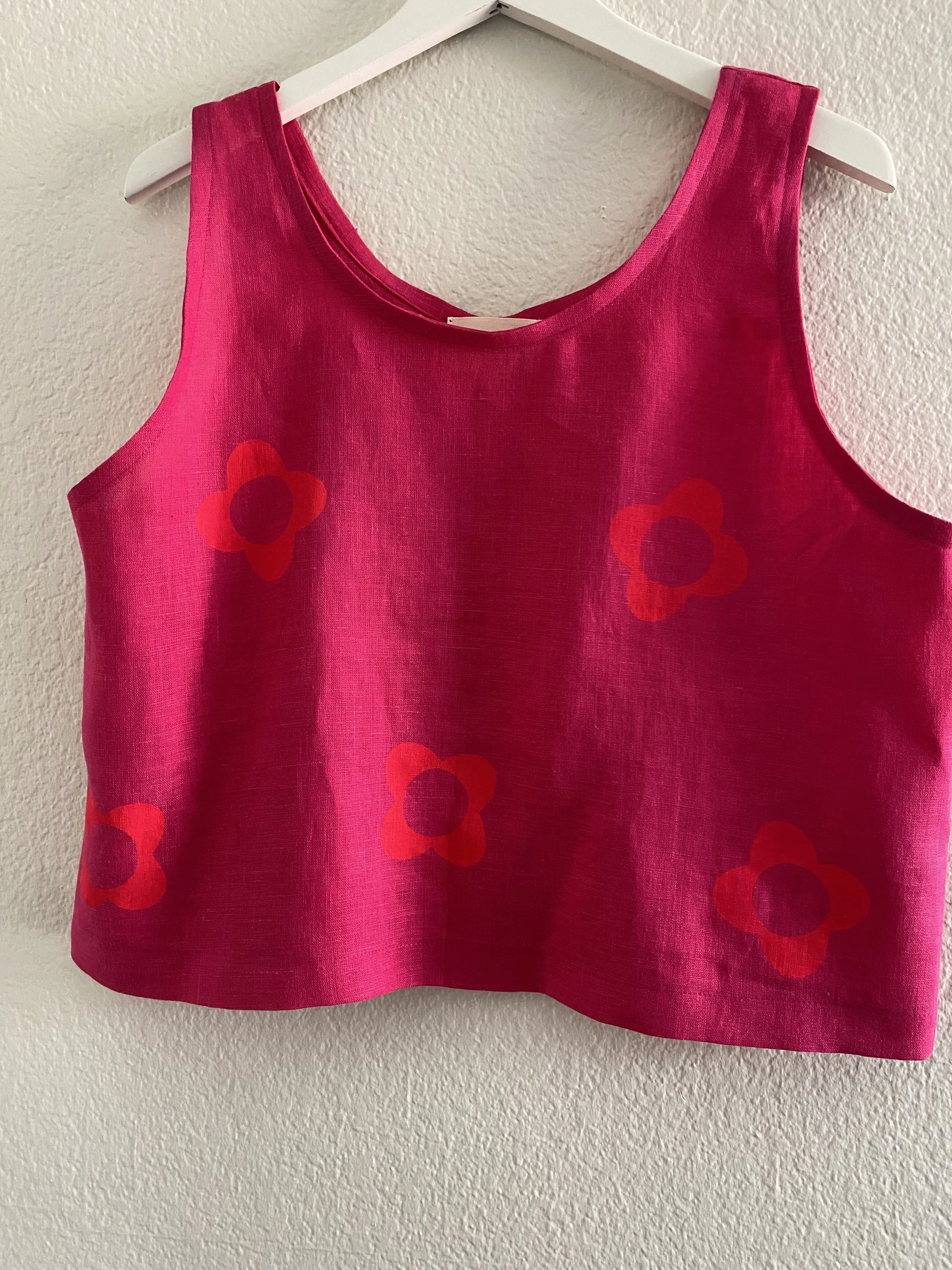 Image 1 of 3 Image 2 of 3 Image 3 of 3 Hot pink linen top $58.00 Made with french linen 100%.Soft texture and silk screening.Comfortable fit Length 19.5 inches from shoulder. Size: Small Medium Large Quantity: Add To Cart Added! Made with french linen 100%.Soft texture and silk screening.Comfortable fit Length 19.5 inches from shoulder.